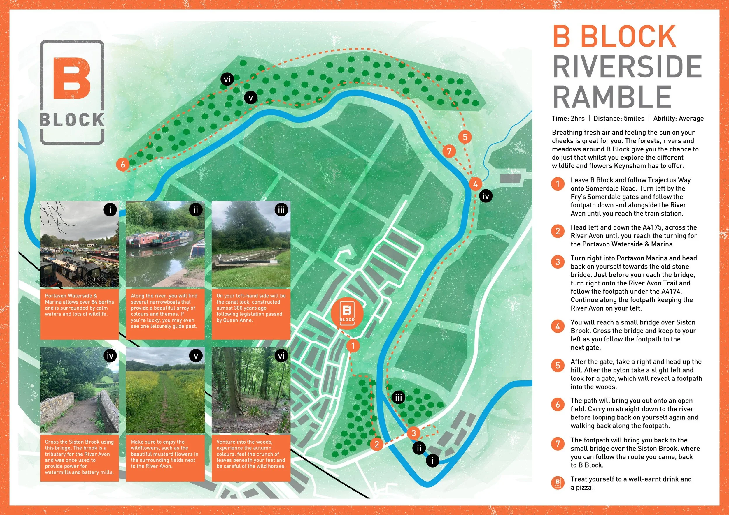 Get some fresh air and take in the stunning, scenic sights of Keynsham on our Riverside Ramble; a 5-mile idyllic walk around the forests, rivers and meadows surrounding B Block. End your walk at B Block, with a nice hot drink, a spot of lunch, or one of our delicious wood-fired pizzas.